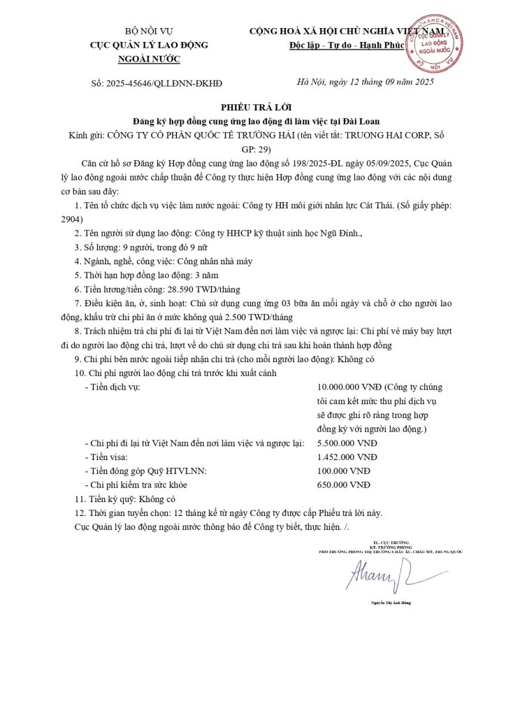 thong tin ve thi truong xuat khau lao dong Dai Loan Một số thông tin về thị trường XKLĐ Đài Loan